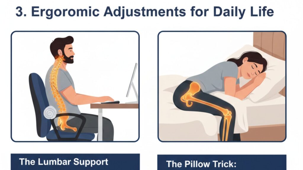 अक्सर गलत तरीके से बैठने से यह समस्या और बढ़ जाती है। कुछ छोटे बदलाव आपकी रीढ़ की हड्डी पर दबाव कम कर सकते हैं: